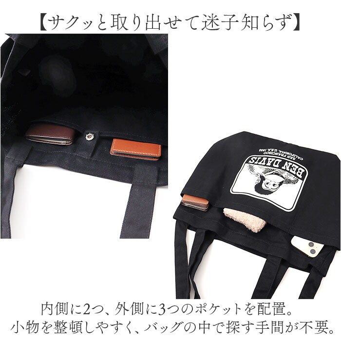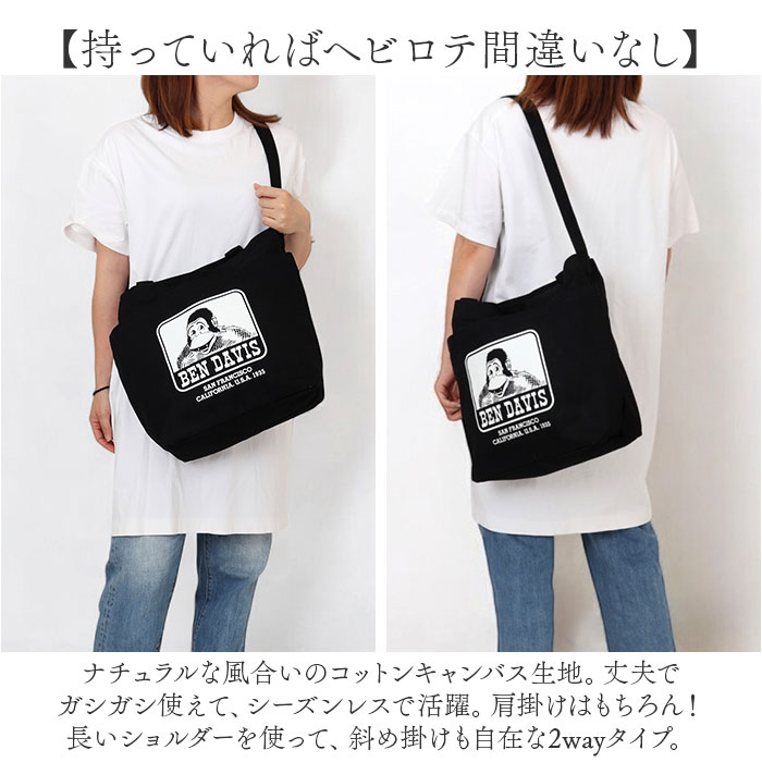 | 商品説明 | 【サッと持ち出せてお出かけの相棒に】デイリー使いに最適!カジュアルな「BEN DAVIS POCKET2WAY TOTE」。【持っていればヘビロテ間違いなし】ナチュラルな風合いのコットンキャンバス生地。丈夫でガシガシ使えて、シーズンレスで活躍。肩掛けはもちろん!長いショルダーを使って、斜め掛けも自在な2wayタイプ。【いつでもどこでも開け閉め簡単】開口部はスナップボタン式。サッと開け閉めできて、中身の飛び出しをガード。【A4対応でざっくりひとまとめ】A4サイズがすっぽり。荷物がまとまる程よい大きさで、メインもサブ使いもできて万能。【サクッと取り出せて迷子知らず】内側に2つ、外側に3つのポケットを配置。小物を整頓しやすく、バッグの中で探す手間が不要。【軽やかな使い心地でノンストレス】体に負担をかけない軽量設計。疲れを軽減できるのが嬉しいポイント。【お揃いOK☆ユニセックスデザイン】シンプルなモノトーンカラーに、ビッグロゴがアクセント。家族やカップルでお揃いやシェアも。【ポケット仕様】内側:オープンポケット×2外側:オープンポケット×3 |