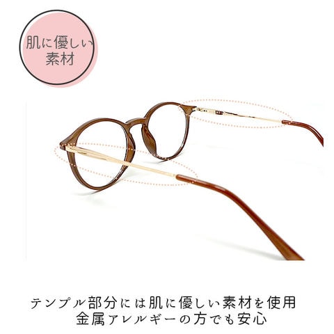 | 注意点 | 本品使用中に不快を感じた場合は、すぐに使用を止めてください。レンズを下に向けて置かないでください。レンズにキズが付くおそれがあります。保管、持ち運びの際は、必ずケースに入れてください。破損のおそれがあります。アルカリ洗剤等で洗わないでください。劣化のおそれがあります。高温になる場所(車内や暖房器具の前など)、直射日光のあたる場所(レンズを通して日光が発火するおそれがあります。)、及び高温多湿の場所に置かないでください。破損のおそれがあります。本品は手元用の眼鏡です。本品を装着したまま、歩行、運転等をしないでください。金属アレルギーのある方は、金属製フレームの本品のご使用前にご注意ください。カメラやモニターの性質により、画像と実物の色の違いがある場合がございますのでご理解願います。 |