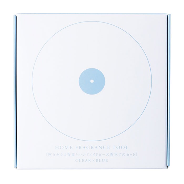 吹きガラス香皿とハンドメイドビーズ香立てのセット【クリア×ブルー】