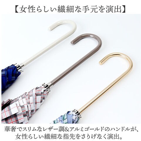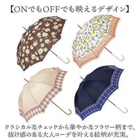 | 商品説明 | 【お洒落を楽しむ全ての女性を応援】地球に優しいテキスタイルが、お出掛けを素敵に彩る♪「because 晴雨兼用 ロングアンブレラ」【雨の日はもちろん日傘としても】傘生地に施されたはっ水加工によって紫外線を遮る効果が得られて、紫外線遮蔽率約80%を実現。※紫外線遮蔽率は、生地の色味によって多少異なりますので、ご了承ください。【ふわりと軽い差し心地】スリムな中棒と軽量で丈夫なスチールの傘骨を採用。スタイリッシュに持ち運べる親骨58cmタイプ。【スムーズな手開きタイプ】混雑した場所でも傘生地をスムーズかつ、安全に開くことのできる手開き式。【セーフガード機能付きで安心】傘の開閉時に指や爪を挟んで傷めないよう、ストッパー部分にはセーフガード機能付き。【たたむ時も手間取らない!】バンドはスムーズにたためるスナップボタン式。「b」のフローラルロゴのカシメがアクセント。【女性らしい繊細な手元を演出】華奢でスリムなレザー調&アルミゴールドのハンドルが、女性らしい繊細な指先をさりげなく演出。※傘生地の絵柄のシリーズにより、手元ハンドルの素材仕上げが異なります。【地球にやさしいテキスタイル】色鮮やかな傘生地は水の使用量や廃液の排出を抑えた染色方法でプリントし、環境負荷の軽減に配慮。【ONでもOFFでも映えるデザイン】クラシカルなチェックから華やかなフラワー柄まで、抜け感のある大人コーデを叶える絵柄が充実。 |