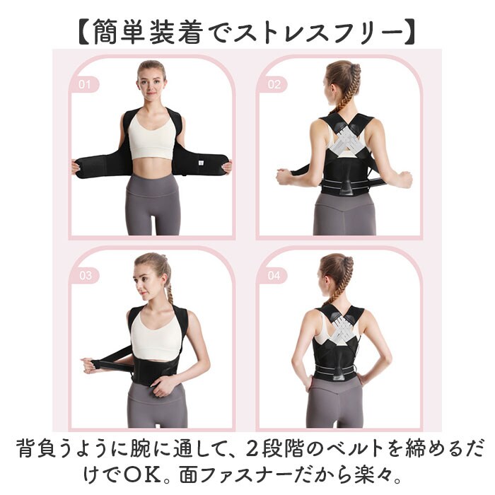| 商品説明 | 【体幹の整った美しい姿勢へ♪】軽量でラクなつけ心地だから、毎日使える!「猫背サポーター 姿勢ベルト」が登場。【背すじをピンと伸ばそう☆】猫背になりがちな現代人のお助けアイテム!ベルトをつければ、姿勢が矯正され背すじ美人に♪【軽くてソフトなつけ心地】苦しくないから毎日続けやすい◎軽くてストレッチ性のあるソフトなつけ心地が魅力。【簡単装着でストレスフリー】背負うように腕に通して、2段階のベルトを締めるだけでOK。面ファスナーだから楽々。【インナーマッスルを鍛えたい方にも】姿勢を正しく保つと、インナーマッスルを使って生活できるように!メリットがたくさん。【フィット感を細かく調節できる】その日の体調やむくみ具合などに合わせてコントロールできるから、毎日無理なく使える。【ユニセックスOK、豊富なサイズ】サイズを幅広くご用意。男女関係なく使えるのが嬉しいポイント! |