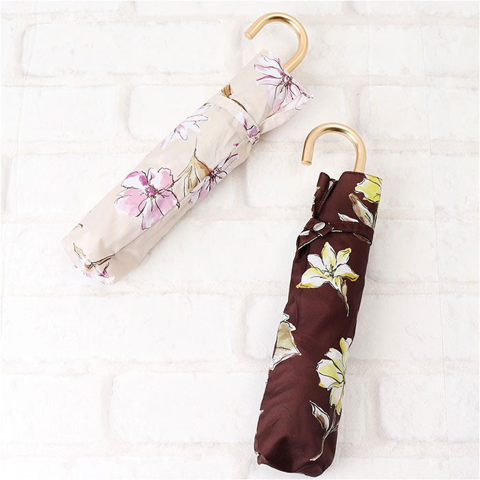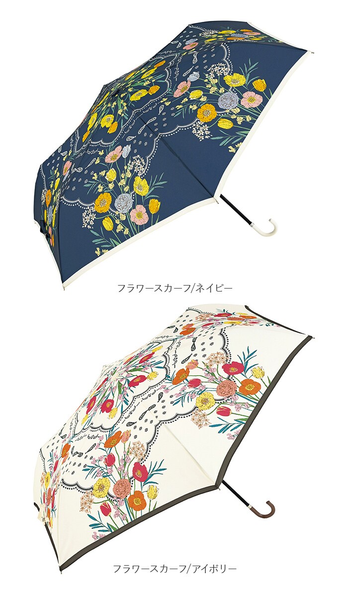 because ビコーズ 晴雨兼用 折りたたみ傘【ドローイングフラワーアイボリー】
