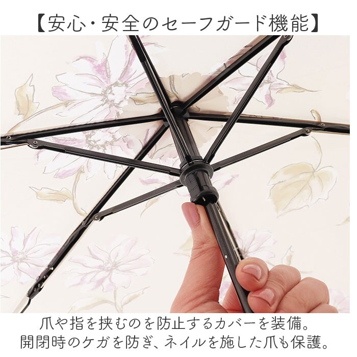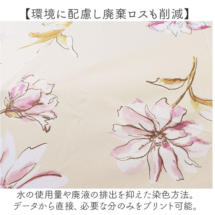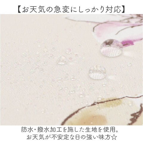 | 商品説明 | 【晴れの日も雨の日もお出かけの相棒】地球に優しいテキスタイル♪雨傘&日傘として使える「because晴雨兼用折りたたみ傘」。【お天気の急変にしっかり対応】防水・撥水加工を施した生地を使用。お天気が不安定な日の強い味方☆【気になる紫外線をしっかりカット】防水撥水加工により、紫外線を遮る効果が!遮蔽率約80%を実現し、日焼けや熱中症対策にも。(※1)生地の色味により、紫外線遮蔽率は多少異なります。【いつでもどこでもイージーオープン】傘骨をポキポキ折る手間なく、スムーズに開閉できる手開き仕様。【安心・安全のセーフガード機能】爪や指を挟むのを防止するカバーを装備。開閉時のケガを防ぎ、ネイルを施した爪も保護。【サクッと留められるボタン式バンド】傘生地を留めるバンドは、バチンっと留めやすいスナップボタン式。【持ち歩きに便利な収納袋付き】傘生地と同じデザインの収納袋が付属。カバンに忍ばせて、スマートに持ち運び。【環境に配慮し廃棄ロスも削減】水の使用量や廃液の排出を抑えた染色方法。データから直接、必要な分のみをプリント可能。【大人可愛い多彩なデジタルプリント】色彩の制限のない、繊細な柄を表現。落ち着きのあるカラーのJ字ハンドルと素敵にマッチ。(※2)デザインにより、ハンドルのカラーが異なります。 |