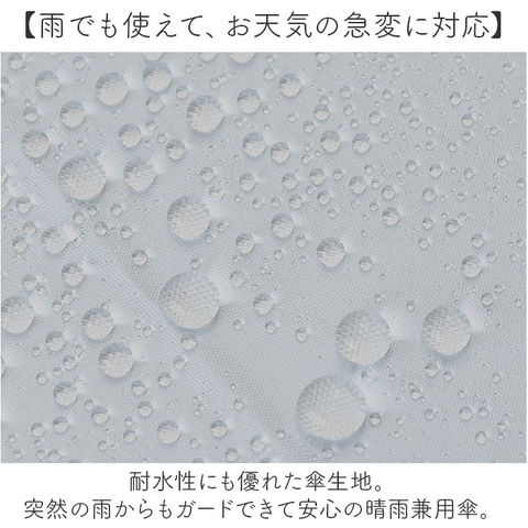 商品説明【晴れの日も雨の日も心強い味方】これ1本で安心「!because PUコーティング スーパーライト晴雨兼用折傘」。【持ち運びに便利なスーパーライト】極細繊維を織り上げた軽量生地、傘骨は軽くて丈夫なカーボン素材。120gほどの軽やかさ◎【強い日差しに負けない機能性】UVカット率100%、UPF50+!紫外線をしっかりカットし、日焼け対策に効果的◎【裏面加工で遮光率100%を実現】裏面にPUコーティングをプラス。生地の目を埋めることで、遮光率も抜群。【遮熱効果も高く熱中症から守る】日差しから熱を遮り、内側温度の上昇を抑える!暑さを軽減し、涼しくお出かけ。【雨でも使えて、お天気の急変に対応】耐水性にも優れた傘生地。突然の雨からもガードできて安心の晴雨兼用傘。【いつでもどこでもイージーオープン】傘骨をポキポキ折る手間なく、スムーズに開閉できる手開き仕様。【安心・安全のセーフガード機能】爪や指を挟むのを防止するカバーを装備。開閉時のケガを防ぎ、ネイルを施した爪も保護。【サッとまとまる面ファスナーバンド】傘生地をまとめるバンドは、面ファスナー式。たたむ時も手間取らず、すっきりひとまとめ。【女性らしい上品なデザイン】柔らかなカラーリングに、リボンやハート柄プリントを♪シーンを問わないシンプルな仕上がり。(※1)リボンは収納袋のワンポイントです。傘生地に装飾はありません。【かさばらずにまとまる収納袋付き】傘生地と同色の収納袋。すっきりまとめてスマートに持ち運び◎(※2)シリーズにより収納袋の仕様が異なります。