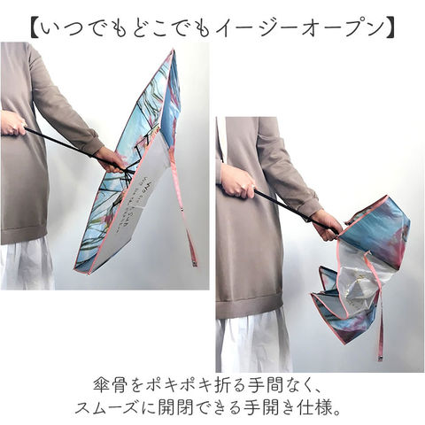 | サイズ | 【本体】 [親骨の長さ]約50cm/[直径]約88cm/[全長]約54.5cm [収納時の長さ]約26cm [収納時の幅]約5.5cm 【収納袋】 [縦]約25cm/[横(開いた状態)]約18.5cm/[持ち手]約21.5cm ※サイズは当店計測の実寸サイズです。実際の商品ならびにメーカー表記サイズとは多少の誤差が生じる場合がございます。あらかじめご了承ください。 |
