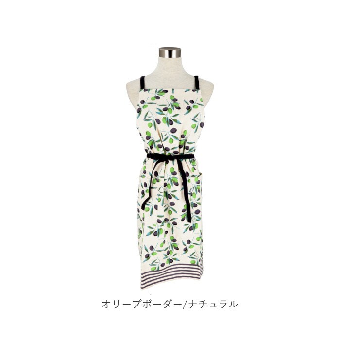 Bergamotショートエプロン【オリーブボーダー/ナチュラル】