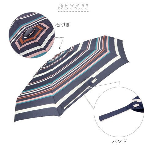 | 素材 | [生地の組成]ポリエステル100% ※紫外線遮蔽率約80% ※この製品は防水・撥水加工した生地を使用した雨傘ですが、日よけ用としてもご使用いただけます。 ※紫外線遮蔽率は生地の色味によって多少異なりますのでご了承下さい。 |