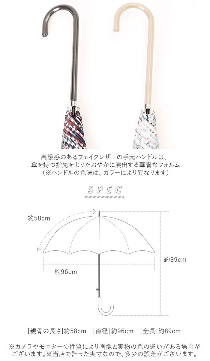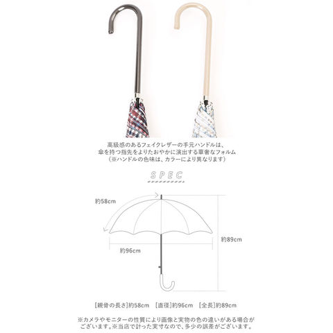 | サイズ | [親骨の長さ]約58cm/[直径]約96cm/[全長]約89cm ※サイズは当店計測の実寸サイズです。実際の商品ならびにメーカー表記サイズとは多少の誤差が生じる場合がございます。あらかじめご了承ください。 |