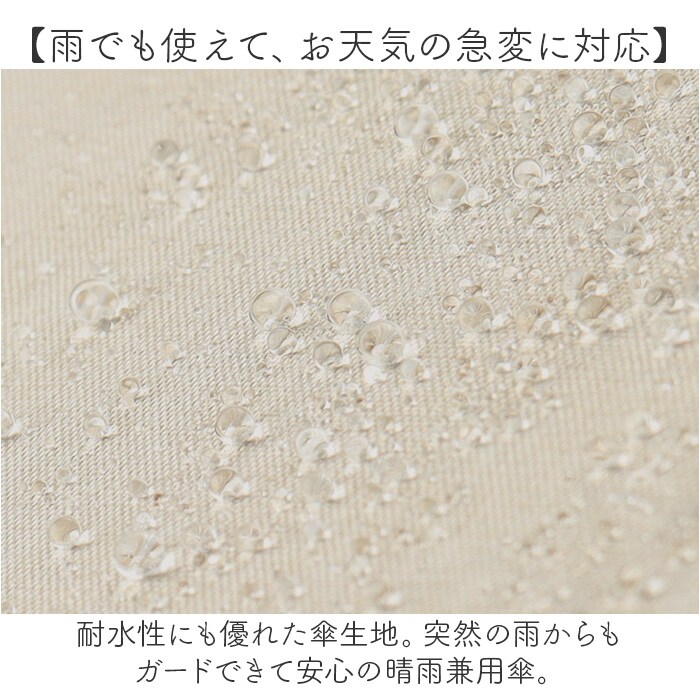 | 商品説明 | 【晴れの日も雨の日も心強い味方】これ1本で安心の兼用タイプ!ポーチ付きの「because 晴雨兼用 折りたたみ傘」。【強い日差しに負けない機能性】UVカット率100%、UPF50+!紫外線をしっかりカットし、日焼け対策に効果的◎【裏面加工で完全遮光を実現】裏面にPUコーティングをプラス。生地の目を埋めることで、遮光率は100%!【遮熱効果も高く熱中症から守る】日差しから熱を遮り、内側温度の上昇を抑える!暑さを軽減し、涼しくお出かけ。【雨でも使えて、お天気の急変に対応】耐水性にも優れた傘生地。突然の雨からもガードできて安心の晴雨兼用傘。【いつでもどこでもイージーオープン】傘骨をポキポキ折る手間なく、スムーズに開閉できる手開き仕様。【安心・安全のセーフガード機能】爪や指を挟むのを防止するカバーを装備。開閉時のケガを防ぎ、ネイルを施した爪も保護。【サッとまとまる面ファスナーバンド】傘生地をまとめるバンドは、面ファスナー式。たたむ時も手間取らず、すっきりひとまとめ。【スマートにバッグインOK】傘生地と同じカラーのファスナーポーチ付き。サッとまとめて、かさばらずに持ち歩き。【ナチュラルで可愛らしいデザイン】シンプルながらフォントデザインがアクセントに♪ウッドハンドルで、おしゃれ度アップ。 |