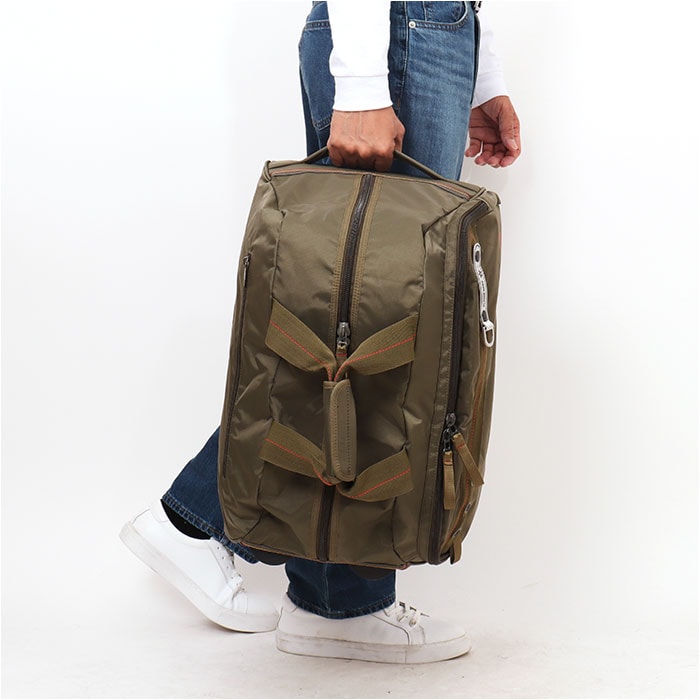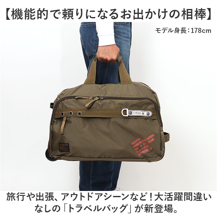 | 商品説明 | 【機能的で頼りになるお出かけの相棒】旅行や出張、アウトドアシーンなど!大活躍間違いなしの「トラベルバッグ」が新登場。【荷物量に合わせてスタイルチェンジ】軽い時はボストンバッグ、重くなったらキャリーに変身!使い分けできる万能アイテム。(※)ボストンの持ち手は、面ファスナー式のカバーでまとめることが可能です。【ガバっと開くダブルファスナー】左右どちらからもオープン!中身を確認しやすく、取り出しもスムーズ。【たっぷり入る◎大容量サイズ】しっかりマチを設け、着替えやトラベルグッズなどもざっくりと収納。【ベルトでホールドできる安心構造】伸縮性のあるゴムベルトを装備。荷物を固定できるので、キャリー使用時も荷物がバラつかない!【サクッと取り出せて迷子知らず】複数のポケットやDカンを配置。バッグの中で小物を探す手間を軽減。【カジュアルなユニセックス仕様】かっこよくキマり、性別問わず持ちやすいミリタリーテイスト!お揃いやシェアもおすすめ。【ポケット仕様】内側:ファスナーポケット×3、ゴム付きオープンポケット×2前面:ダブルファスナーポケット×1【内側にオープンポケット×2、ペンポケット×3)最前面:ファスナーポケット×1背面:ファスナーポケット×1 |