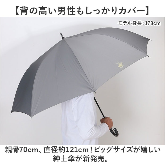 | 商品説明 | 【背の高い男性もしっかりカバー】親骨70cm、直径約121cm!ビッグサイズが嬉しい紳士傘が新発売。【雨から体をしっかりカバー♪】直径約121cmと雨からしっかり守るビッグサイズ♪カバンやリュックが濡れにくいのも◎【シンプルで様々なシーンに】シンプルなデザインと派手すぎないカラーで、普段使いはもちろん、スーツスタイルにも合う!【ベルトと傘生地にブランドロゴ】上品な色でプリントされた「BEVERLY HILLS POLO CLUB」のロゴ付き※【落ち着きのある合皮ハンドル】傘生地に馴染む、シックな合皮素材。太めでしっかり握りやすいつくり。【まとめやすい傘バンド】サッと留められる面ファスナーテープ。太めのベルトでまとめやすい作り。【送迎用にも】男性の方の普段使いはもちろん、女性の方の送迎用として使うのもGOOD。【注意事項】※カラーにより、ロゴプリントのカラーが異なります。 |