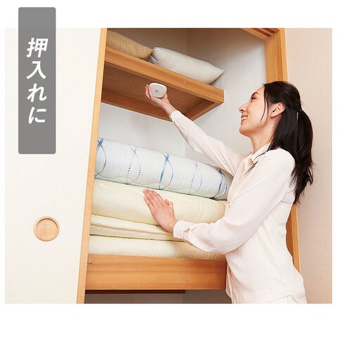 | 注意点 | 1個あたりの使用目安:押入れ1間交換目安:約4ヶ月お子様の手の届く場所に置かないでください。本品の特性上、開封時および設置時しばらく製品特有のにおいがする場合があります。お使い頂くうちににおいは薄まります。また、においによる品質への影響はありません。効果持続期間は使用状況により多少異なります。バイオは生き物です。環境によって活動が変化するため、効果が目に見えて現れてくる時期は状況によって異なります。環境下に汚れや悪臭の原因となる物質などの有機物が異常に多い場合、効果を感じるのに時間がかかります。本品設置中に殺菌・抗菌効果のある防虫剤・商品との併用はバイオが死滅する恐れがありますのでおやめください。本品はカビの増殖を抑制しますが、カビの色素は取れません。凹凸のある面や貼り付け箇所の材質によっては、落ちてくる可能性がありますのでご注意ください。貼り付け箇所に両面テープが残る場合があります。残った場合は市販のシールはがしなどで取り除いてください。本来の用途以外には使用しないでください。カメラやモニターの性質により、画像と実物の色の違いがある場合がございますのでご理解願います。 |