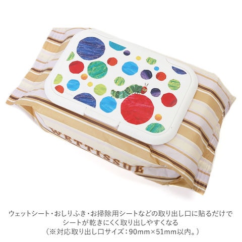 | 商品説明 | 貼ってはがせるウェットシートのフタ「Bitatto」が登場。お手持ちのウェットシートやおしりふき、お掃除用シートなどの取り出し口に貼るだけで、シートが乾きにくく取り出しやすくなる◎(※対応取り出し口サイズ:90mm×51mm以内。すべてのメーカー、サイズに対応しているわけではありません。)フタは片手でラクラク開閉OK!ホコリやゴミは軽く水洗いすることで、粘着力が復活。貼ってはがして繰り返し使えるのが嬉しい♪抗菌剤を練り込んだ素材を使っているから衛生的。人気のキャラクターデザインを豊富にラインナップ!お気に入りを見つけて♪ |