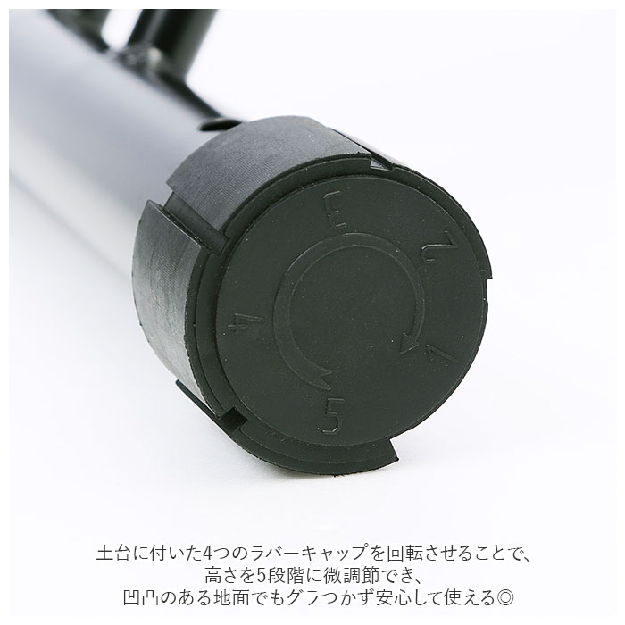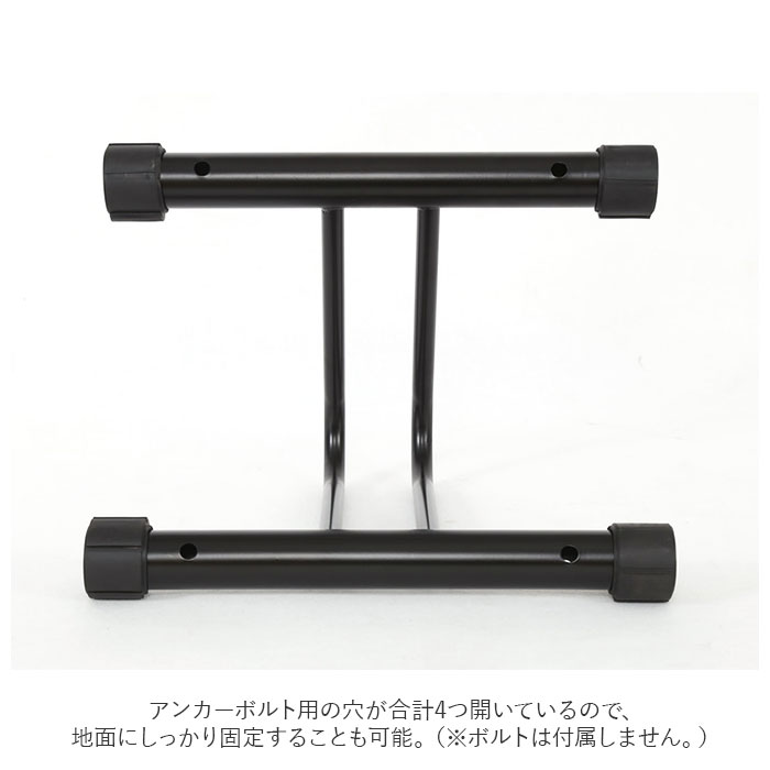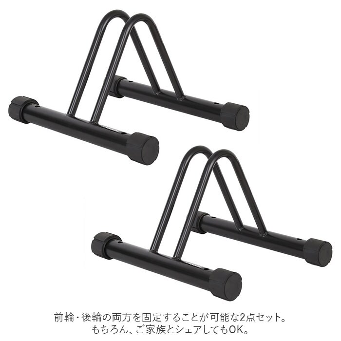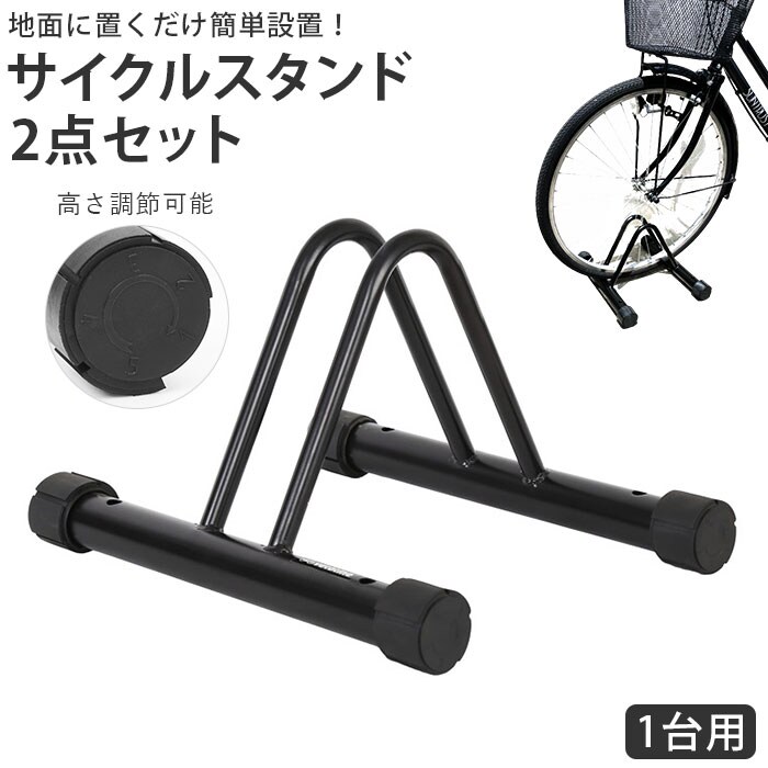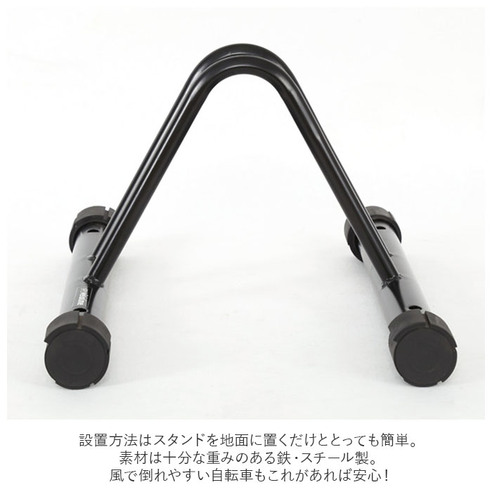 | 商品説明 | ご自宅やお店の駐輪場に!自転車の駐輪がとっても楽になる「サイクルスタンド」2点セット。設置方法はスタンドを地面に置くだけととっても簡単。アンカーボルト用の穴が合計4つ開いているので、地面にしっかり固定することも可能。(※ボルトは付属しません。)土台に付いた4つのラバーキャップを回転させることで、高さを5段階に微調節でき、凹凸のある地面でもグラつかず安心して使える◎前輪・後輪の両方を固定することが可能な2点セット。もちろん、ご家族とシェアしてもOK。素材は十分な重みのある鉄・スチール製。風で倒れやすい自転車もこれがあれば安心! |