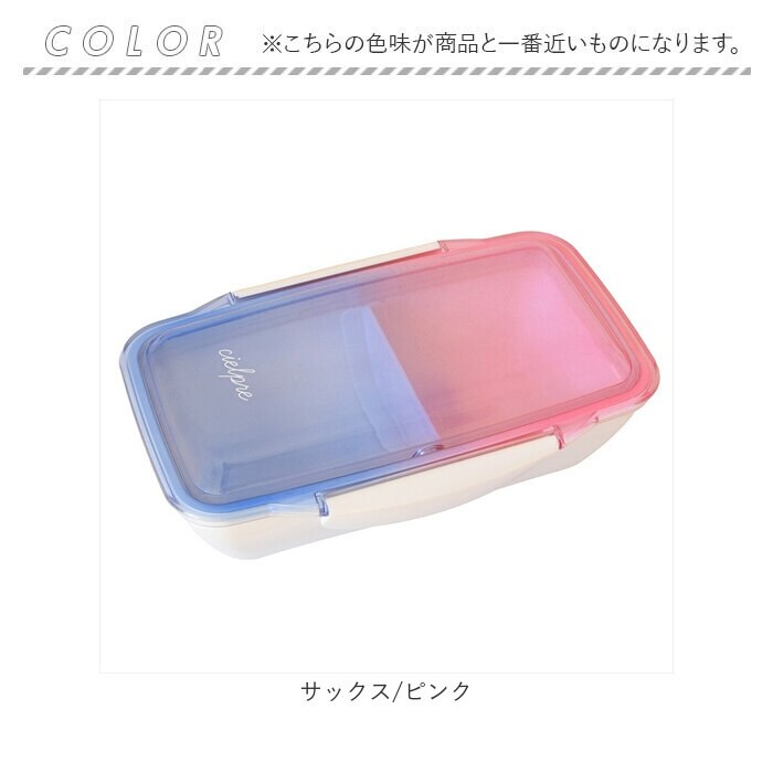 | 商品説明 | エモい配色のグラデーションランチボックスドーム型のフタで盛り付けをキープ盛り付け次第で、容量500ml~660mlで調整可能。本体内側はごはんがつきにくいエンボス加工電子レンジOK(フタ以外)食器洗い乾燥機OK(フタ以外) |