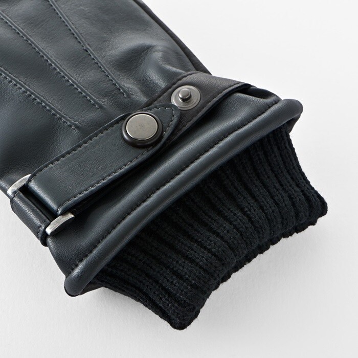 | 商品説明 | ホックベルト付きベーシックデザイン。手口のニットカフスがあたたかさをキープ。親指・人差し指には導電革を使用し、タッチパネル操作をアシスト。【角カンについて】BK / CH / NV / BR・・・艶ありを使用。BU / RD / OR ・・・艶消しを使用。 |