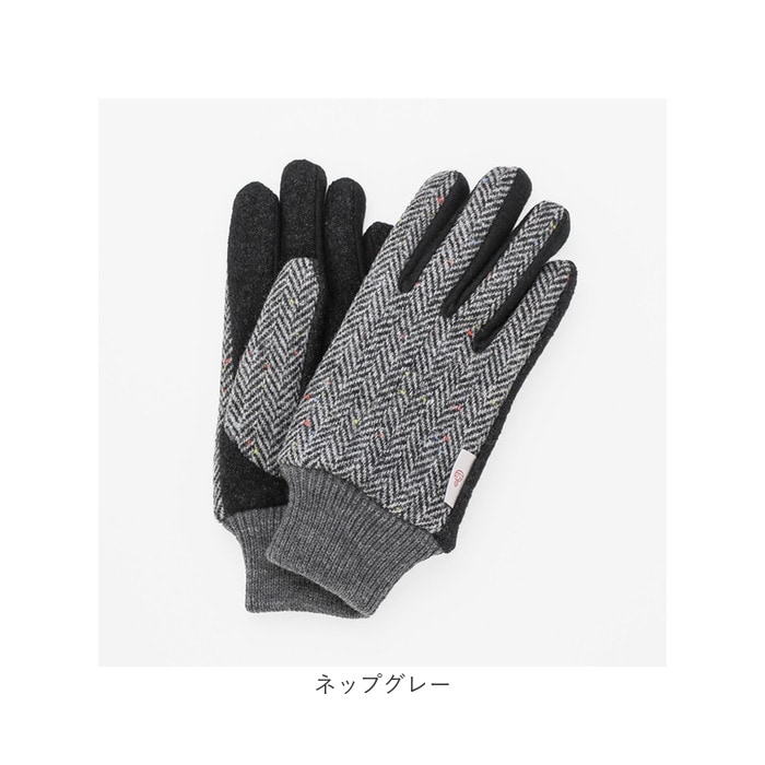 | 商品説明 | ハリスツイードとジャージのコンビグローブ。掌側は全面導電ジャージを使用し、スムーズなタッチ操作が可能。ボリュームと軽さを併せ持つモデル。 |