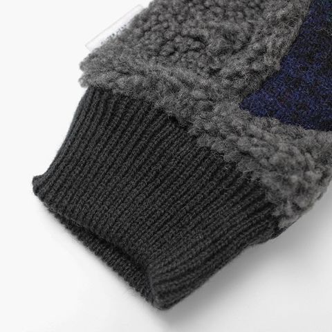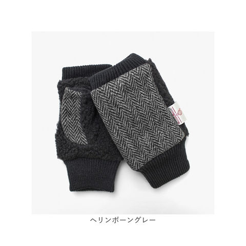 | 商品説明 | HarrisTweedのフィンガーレスグローブ。指先と手首にニットを使用したデザインが特徴。掌側はボリュームのあるボアを使用。指無しタイプなので、ユニセックスに使える。 |