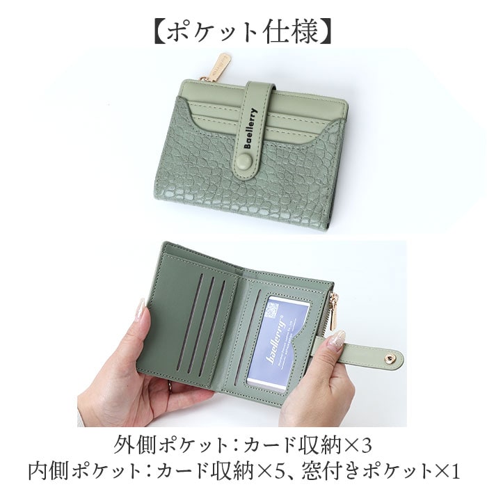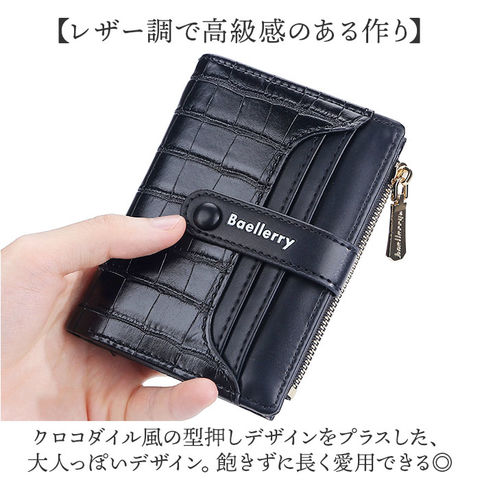 | 商品説明 | 【高見えが嬉しい大人のウォレット♪】スマートな2つ折りなのにたっぷり収納◎「財布 カードケース コンパクトサイズ」が登場。【レザー調で高級感のある作り】クロコダイル風の型押しデザインをプラスした、大人っぽいデザイン。飽きずに長く愛用できる◎【コンパクトなのに収納力抜群!】片手サイズのコンパクトさで、カードポケットを9つも搭載。必要なアイテムを全て収納OK。【カバンに収まる薄さがポイント】厚みを抑えたすっきりフォルムで、持ち歩きもストレスフリー。カバンでかさばらないのがGOOD【窓付きポケットが便利!】免許証や社員証などを入れるのに便利な、クリア窓付きポケットが嬉しい!高機能◎!【ポケット仕様】外側ポケット:カード収納×3内側ポケット:カード収納×5、窓付きポケット×1 |