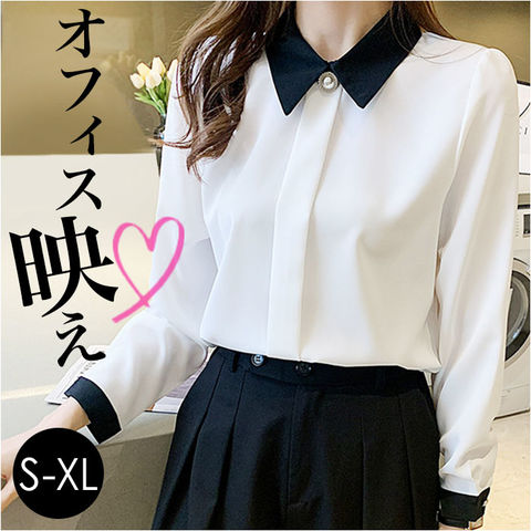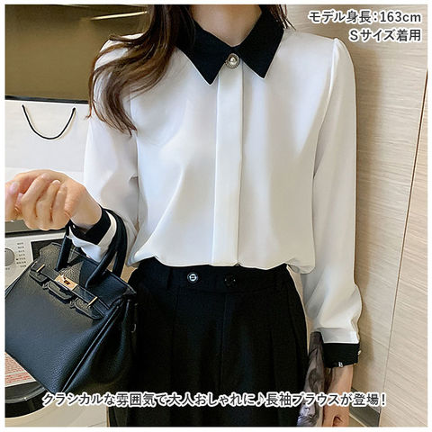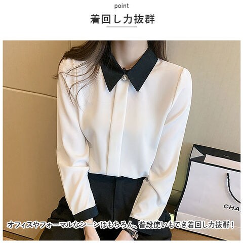 ブラウス トップス シャツ 長袖 レディース おしゃれ bls8672【ホワイト】【XL】