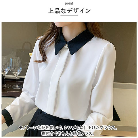 | 商品説明 | クラシカルな雰囲気で大人おしゃれに♪長袖ブラウスが登場!【上品なデザイン】モノトーンな配色使いで、シンプルに仕上げたブラウス。襟付きできちんと感をプラス。【アクセサリーいらず】イミテーションパールボタンのアクセントが素敵☆アクセサリーなしでも華やかな印象に◎【サラっとした着心地】滑らかで肌に優しい生地を使用。サラっとした着心地なのも嬉しいポイント◎【着回し力抜群】オフィスやフォーマルなシーンはもちろん、普段使いもでき着回し力抜群! |