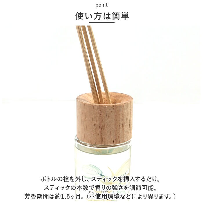 | サイズ | 【ボトル使用時】 [高さ]約15cm/[直径]約4.5cm 【スティック】 [長さ]約30cm ※サイズは当店平置き実寸サイズです。実際の商品とは多少の誤差が生じる場合がございます。あらかじめご了承ください。 |