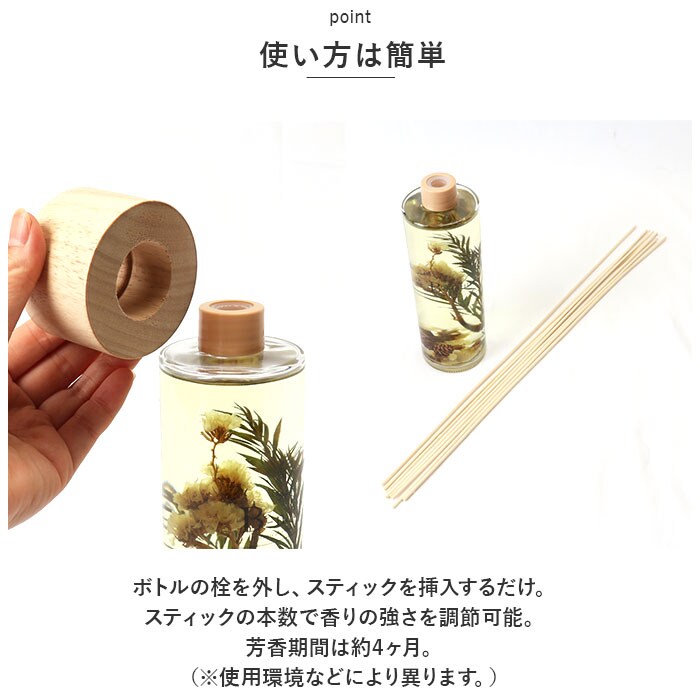 | サイズ | 【ボトル使用時】 [高さ]約20cm/[直径]約6.5cm 【スティック】 [長さ]約45cm ※サイズは当店平置き実寸サイズです。実際の商品とは多少の誤差が生じる場合がございます。あらかじめご了承ください。 |
