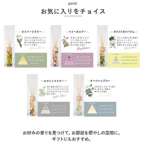 | 商品説明 | 自然の香りとともに、空間を美しく演出。「B-nature リードディフューザー」430mlタイプが新登場。【ボタニカルシリーズ】ふわっと自然の息吹を、自宅で感じることのできるシリーズ。心地よい香りが広がり、疲れた心もリラックス。【使い方は簡単】ボトルの栓を外し、スティックを挿入するだけ。スティックの本数で香りの強さを調節可能。芳香期間は約4ヶ月。(※使用環境などにより異ります。)【存在感のある大きめサイズ】・430mlの大容量タイプなので、リビングなどの広いスペースに最適。【おしゃれなインテリアに】ボトル内にドライフラワーが詰め込まれており、ナチュラル感たっぷり。置いておくだけで絵になるアイテム。【お気に入りをチョイス】お好みの香りを見つけて、お部屋を癒やしの空間に。ギフトにもおすすめ。 |