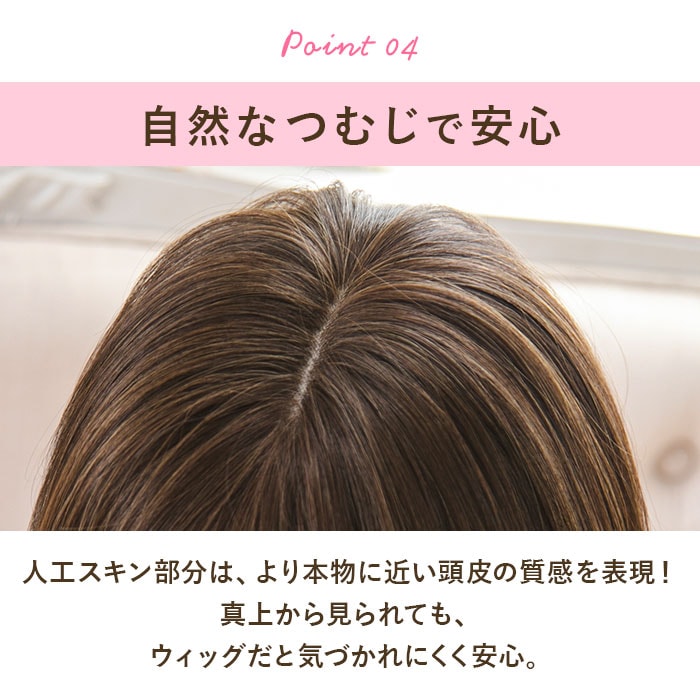 | 商品説明 | 帽子をかぶるようにウィッグをかぶって、外ハネボブヘアに♪誰でも簡単装着できる、帽子ウィッグが登場。【憧れのヘアスタイルにチェンジ】メリハリのあるシルエットをつくる、外ハネボブヘアに変身☆ゆったり感のあるサイズで、ちょっとしたお出かけやリラックスタイムにも!【ウィグに帽子を内蔵】ウィッグの内側に帽子を付けた仕様。伸縮性に優れているから締めつけ感を感じにくく、長時間の着用もストレスフリー◎【キャップは天然素材】キャップには土に還るエコ素材を採用。吸放湿性・耐久性に優れており、汗ばむ季節も快適。柔らかな肌触りで、デリケート肌の方も大丈夫。【着脱がカンタン】内側の帽子を持ってウィッグをかぶり、自分のこめかみやつむじの位置と合わせてスタイリングするだけ。ロングヘアの方は、付属のオールウィッグネットを使用。【自分サイズにフィット】内側に面ファスナー式のアジャスター付きで、頭のカタチに合わせてラクラク調節。金属などの留め具不使用で、頭皮に負担がかからないのもポイント。【2wayもみあげ】内側に折りたためる2wayもみあげで、メガネやマスクを着用する時も邪魔にならない!地毛がショートヘアの方は、地毛のもみあげを活かした着用も可能。【自然なつむじ】人工スキン部分は、より本物に近い頭皮の質感を表現!真上から見られても、ウィッグだと気づかれにくく安心。【ナローミックスファイバー】従来の新ファイバーに細いファイバーをミックス!より人毛に近い質感を再現することで、ウィッグに見えないナチュラルな仕上がりに。【日本製耐熱ファイバー100%】コテやヘアアイロンの使用もOK。お好みに合わせてアレンジできるのが嬉しい!【お手入れラクラク】絡みや汚れが気になったら手洗いできるから、いつも清潔。【ウィッグ初心者さんでも安心】着用ポイントなどが書かれた説明書、持ち運びに便利なクリアポーチが付属。【使い方いろいろ】おしゃれを楽しむアイテムとしてはもちろん、医療用としても活躍。 |