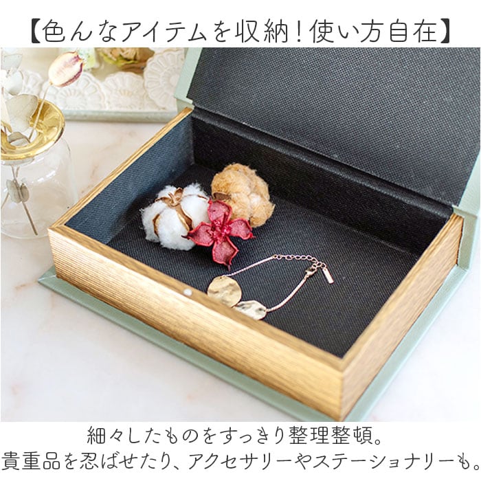 | 商品説明 | 【お部屋の雰囲気がワンランクアップ】置いておくだけで、こなれた空間に♪小物を収納できて、おしゃれな「ブックボックス」。【インテリアになる本型収納箱】本のようなカタチのボックス。本棚に並べたりデスク周りに置いたりでき、秘密の隠し場所にも☆【マグネット式でワンタッチ開閉】開口部にマグネット付き。力いらずで開け閉めしやすく、閉じれば中身のこぼれ落ちもガード。【色んなアイテムを収納!使い方自在】細々したものをすっきり整理整頓。貴重品を忍ばせたり、アクセサリーやステーショナリーも。【サプライズボックスとしても活躍】小物やお菓子を入れて、プレゼント♪見た目も可愛らしく、喜ばれること間違いなし!【撮影などの小道具としても活躍】SNSの投稿写真にプラスワン。結婚式のウェルカムスペースにもおすすめ☆【揃えたくなるラインナップ】空間のアクセントになる、豊富なバリエーション。デザイン違いで並べてもOK! |