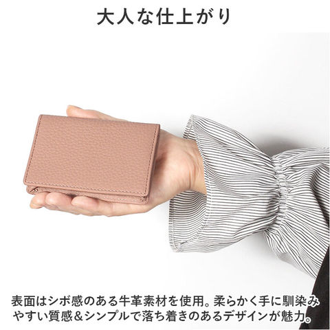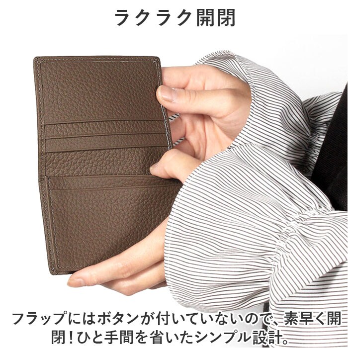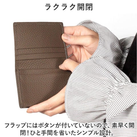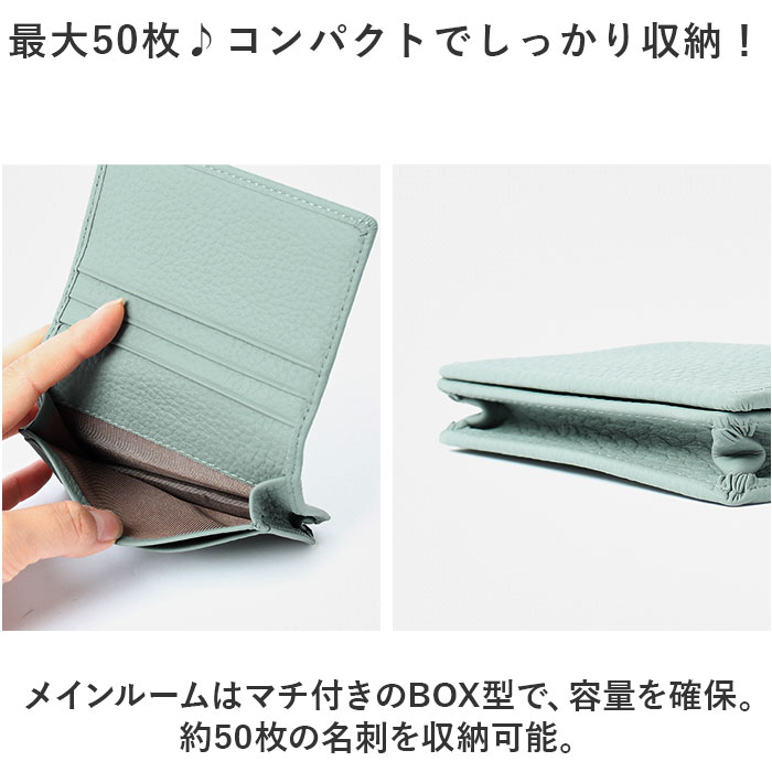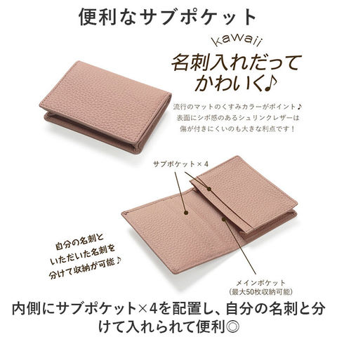 | 商品説明 | シンプルで使いやすい名刺入れが新発売♪【大人な仕上がり】表面はシボ感のある牛革素材を使用。柔らかく手に馴染みやすい質感&シンプルで落ち着きのあるデザインが魅力。【ラクラク開閉】フラップにはボタンが付いていないので、素早く開閉!ひと手間を省いたシンプル設計。【最大50枚♪コンパクトでしっかり収納!】メインルームはマチ付きのBOX型で、容量を確保。約50枚の名刺を収納可能。【便利なサブポケット】内側にサブポケット×4を配置し、自分の名刺と分けて入れられて便利◎【シンプルデザイン&カラー】シンプルなデザインと落ち着きのあるくすみカラーを採用。幅広い年代で使用でき、就職祝いなどのプチギフトにもおすすめ。【Blanc Pomme】Blanc は「白い」、Pomme は「リンゴの木」を意味し、リンゴの花言葉である「最も美しい女性へ」からの由来。女性らしいエレガントでスマートな印象を与えるアイテムが多数展開。【ポケット仕様】カードポケット×4 |