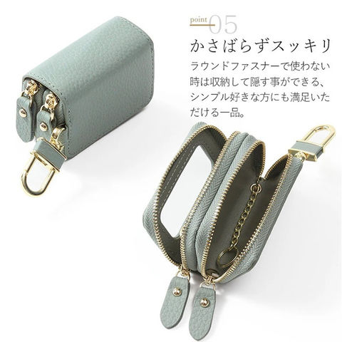 | 商品説明 | 【ミニマルで使いやすい】装飾が少ないミニマルデザインでスマートに使える☆クリア窓つきWルームキーケースが発売!【洗練されたシンプルさ】装飾がないシンプルさがポイント。無地のナチュラルカラーで洗練されたデザイン♪【嬉しい本革製】耐久性もある本革を採用。独特なシボ感もあり高級感ある仕上がり。【鍵を仕分けて収納】・2ルームなのでお家や愛車のカギなど仕分けて収納できるのもGOOD。【スマートキーを入れたまま操作】片面はクリア窓仕様なので、スマートキーのボタン操作が収納したまま可能!【2ルームともスマートキーOK】マチ幅がある収納スペースなので、スマートキーなど大きな鍵もどちらも対応。【開閉しやすいファスナー】ファスナーはラウンドファスナーを採用し、鍵の取り出しがスムーズに。【ポケットやミニバッグにIN】コンパクトな作りなので、アウターなどのポケットやミニバッグに収納OK。【ループやカバンの持ち手に】ケースの上部にはカラビナが付いておりベルトループやカバンの持ち手から下げるのもOK。【Blanc Pomme】リンゴの花言葉である「最も美しい女性へ」からの由来。エレガントでスマートなアイテム。(※)Blancは「白い」、Pomme は「リンゴの木」をを意味する言葉です。【機能仕様】キーリング×2(各ルームに1つずつ)、クリア窓付きルーム×1(片面のみ) |