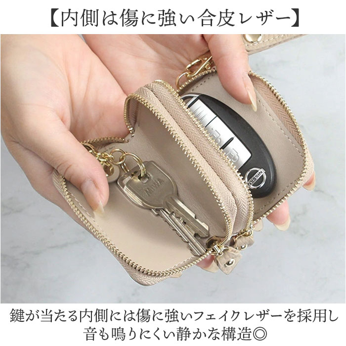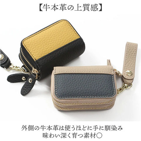 | 商品説明 | 【本革バイカラーのWジップキーケース】Blanc Pommeの牛革キーケースはWジップでスマートキーも鍵も整理。【Wジップで鍵を分けて収納】ダブルファスナーでスマートキーと鍵を別々に収納できる◎【外せるチェーン】スナップボタン式のキーチェーンだから玄関の鍵だけを外して使えるクイック仕様♪【くすみカラーの大人バイカラー】トレンドのくすみカラーに差し色を効かせたバイカラーが手元をおしゃれに見せる。【バッグに付けてチャーム使い】360度回転する取り外し可能なストラップ付きでバッグの持ち手に付ければかわいいアクセント!【牛本革の上質感】外側の牛本革は使うほどに手に馴染み味わい深く育つ素材〇【内側は傷に強い合皮レザー】鍵が当たる内側には傷に強いフェイクレザーを採用し音も鳴りにくい静かな構造◎【手のひらサイズ】約6×8.5cmの手のひらに収まるコンパクトサイズ。 |