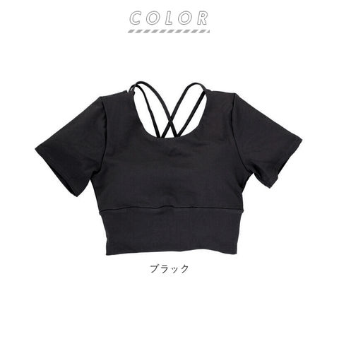 ヨガウェア ブラトップ 半袖 brads02【ブラック】【Sサイズ】