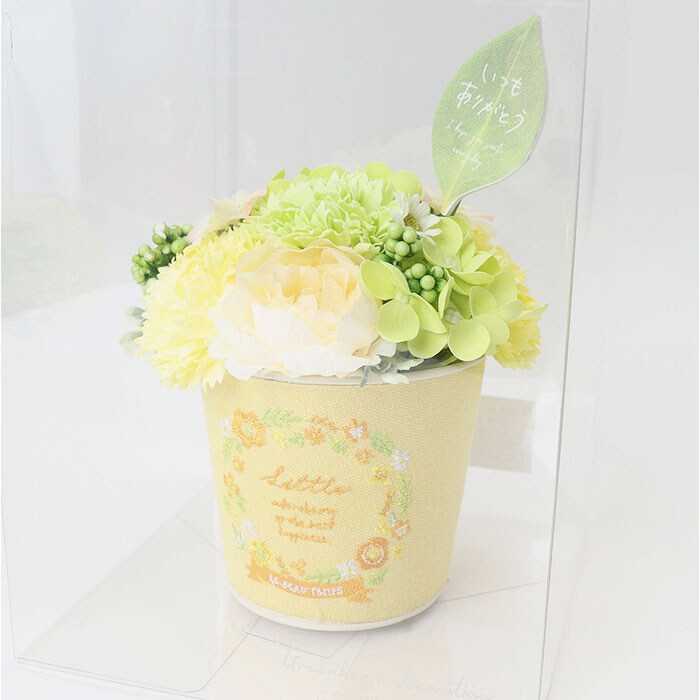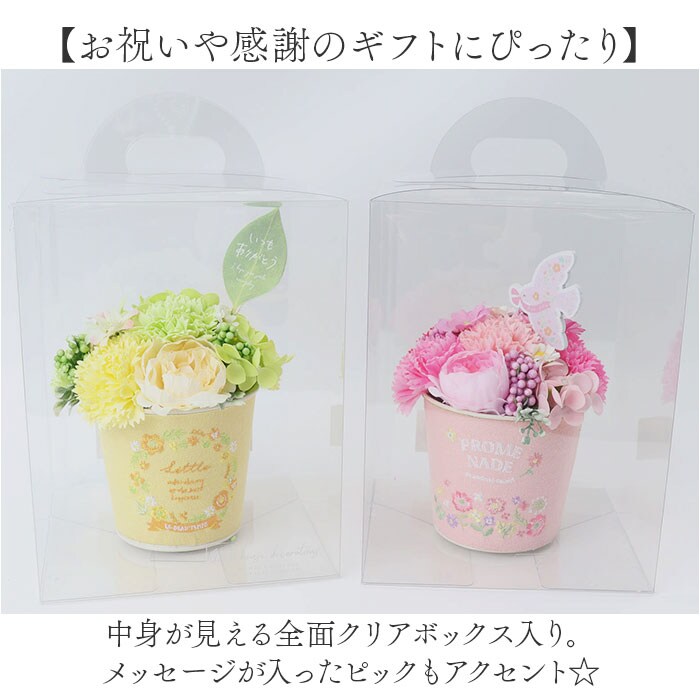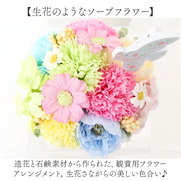 | 商品説明 | 【手軽に彩りをプラスできるアイテム】インテリアに馴染む、ポット入り♪おしゃれに飾れる「ブリキソープフラワー」。【お花と相性ばっちりな刺繍ポット】繊細な刺繍デザインを施したブリキポット&色とりどりのアーティフィシャルフラワーがマッチ♪【生花のようなソープフラワー】造花と石鹸素材から作られた、観賞用フラワーアレンジメント。生花さながらの美しい色合い♪【面倒なメンテナンスは不要】水をあげるなどのお手入れは必要なし。枯れることなく、長く楽しめるのが嬉しい!(※)水濡れや直射日光にご注意ください。【ソープならではの香りも楽しめる】置いておくだけで、香りがふんわり広がる♪空間を華やかに演出し、心にも癒しを。【お祝いや感謝のギフトにぴったり】中身が見える全面クリアボックス入り。メッセージが入ったピックもアクセント☆ |