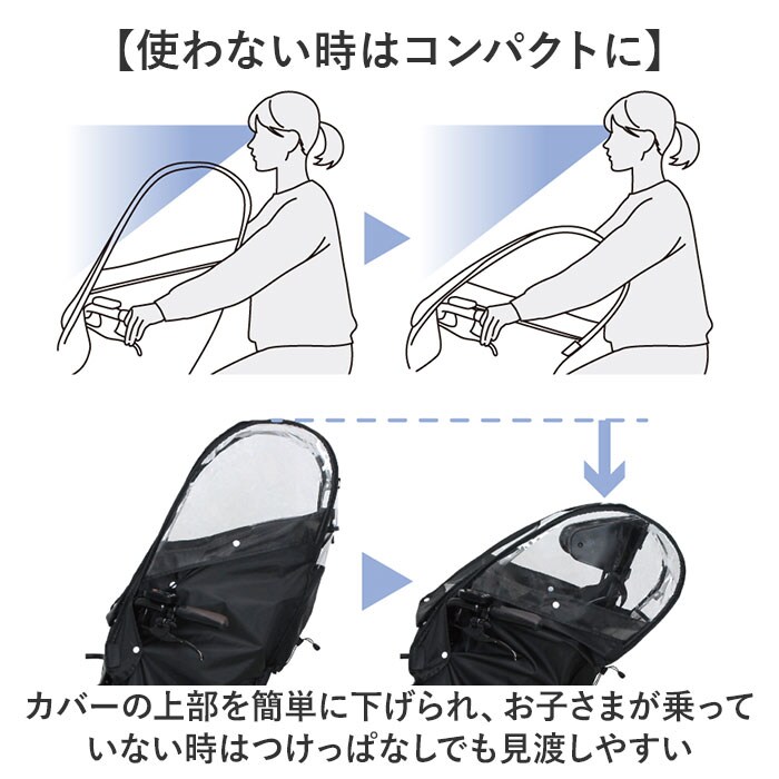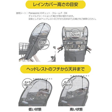 | 商品説明 | 【つけっぱなし派のママ・パパに】つけっぱなしでもOK!後付けフロントチャイルドシート専用のレインカバーが発売。【使わない時はコンパクトに】カバーの上部を簡単に下げられ、お子さまが乗っていない時はつけっぱなしでも見渡しやすい【過ごしやすい広々空間】しっかりした芯材を入れることにより広々空間を作りだしお子さまの頭がカバーに当たらない※(※)芯材は後入れです。【さらに形状をしっかりと保つ】さらに本体内側の背面に芯材をプラスすることで、形状保持力を向上☆【お子さまの成長に合わせて調節】固定プレートと背部内側の面ファスナーでカバーの高さを簡単に変えられるのも◎※(※)ヘッドレストでの高さ調節はできません。(※)ヘッドレストのフチから天井まで約16cm~最大で約20cm。【載せ下ろしやすい】天井部分が大きく開く作りで、お子さまを両手でしっかり抱っこ可能♪乗せおろしもラクラク。【雨の日の送迎に】撥水加工を施している生地を使用しているので、雨の日の幼稚園や保育園の送り迎えに便利。※(※)完全防水ではありません【暑い日もお子さまが快適に】足元の裾ボタンと前窓を開くことで、フルオープンで風通しを確保。熱がこもらない作りに。【様々な自転車に対応】ヘッドレストがあるチャイルドシートに対応!後付けタイプなので車種問わず使える☆(※)ヘッドレストないタイプのチャイルドシートには対応していません。(※)適合身長100cm以下 |