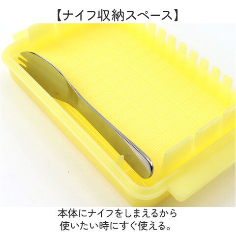 | 注意点 | 電子レンジ:可 (フタ・バターナイフを外してください。) 食洗機:不可お取り扱いの際は、商品やパッケージなどに記載されている品質表示、アテンションタグ、ご使用上の注意事項などを必ずご確認下さい。本来の目的以外にはご使用にならないで下さい。カメラやモニターの性質により、画像と実物の色の違いがある場合がございますのでご理解願います。 |