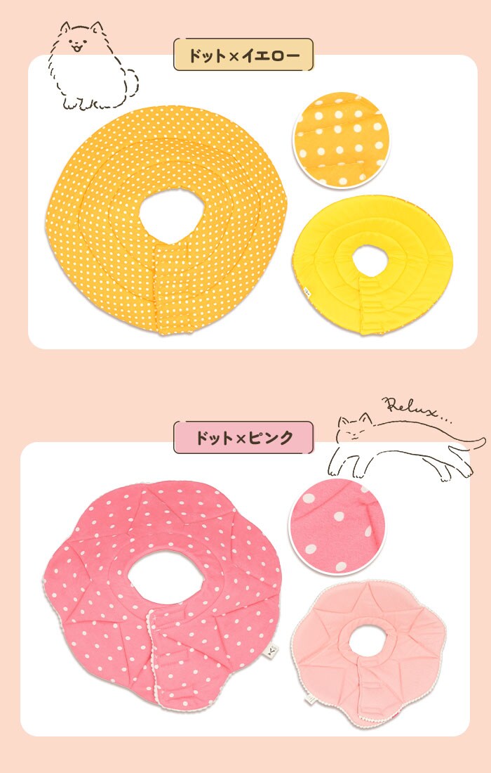 エリザベスカラー ソフト 犬 猫 花柄 bu818【ドット×イエロー】【Lサイズ】