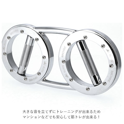| 商品説明 | 本国アメリカで空前の大ヒット!トップクラスの格闘家や、リハビリステーションでも幅広く活用されている、ホームタイプのエクササイズ器具、バーンマシンが日本上陸!バーンマシンは、ボクシングのスピードバッグを打つように、二つの車輪状の器具を両手でぐるぐると回転させて使うトレーニング器具。国内外のトップアスリートも愛用中。使い方は簡単!本体重量を持ち上げて、フォームを維持しながら回すだけ!約5.5kgの重量を支えながら、両腕腹筋背筋をはじめとした各部をエクササイズ!さらに高速回転させることで、スタミナトレーニングにも。ダンベル運動だけでは体感できないひねりのある動きに加重することで、胸肩背中脚と全身のエクササイズが行え、同時に有酸素運動も実現。場所をとらず、自宅の小さなスペースで簡単にエクササイズができる!フィットネスジムに通う時間が取れない忙しい方に最適。大きな音を立てずにトレーニングが出来るため、マンションなどでも安心して筋トレが出来る。わかりやすいトレーニングDVD付き! |
