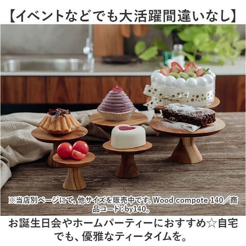 商品説明【いつものお料理に特別感を♪】ケーキやお菓子がキレイに映える!使い方いろいろ「Wood compote 120」。【使うほどに愛着のわくアイテム】木目が美しく、優しい風合いのチーク材スタンド。経年変化を楽しめるのも魅力の1つ。【木材の自然な美しさはそのままに】木材を保護するオイルフィニッシュ仕上げ。呼吸を妨げず、ナチュラルな仕上がりに。【自宅で気軽にカフェ気分を満喫】ミニサイズのケーキや焼き菓子を乗せて、カフェのようなスタイルを再現♪【小物をおしゃれにディスプレイ】時計やアクセサリー、鍵などのアイテムを置くだけで見せる収納に!【積み重ねて豪華さをアップ】別売りの他サイズと重ねると、タワー型のケーキスタンドに♪アフタヌーンティーを楽しめる!(※)当店別ページにて、他サイズを販売中です。Wood compote 140/商品コード:by140。【イベントなどでも大活躍間違いなし】お誕生日会やホームパーティーにおすすめ☆自宅でも、優雅なティータイムを。