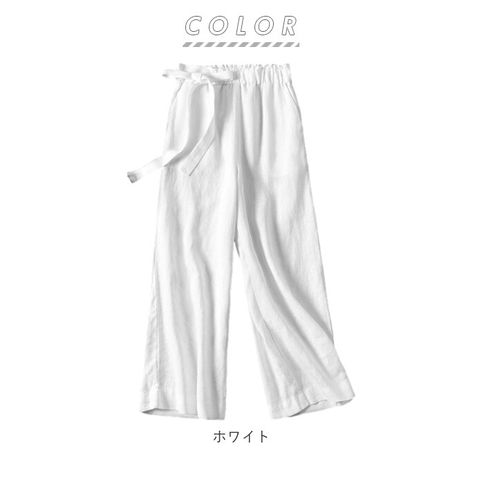 綿麻ワイドパンツ c0738096【ホワイト】【フリーサイズ】