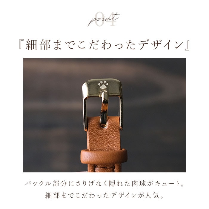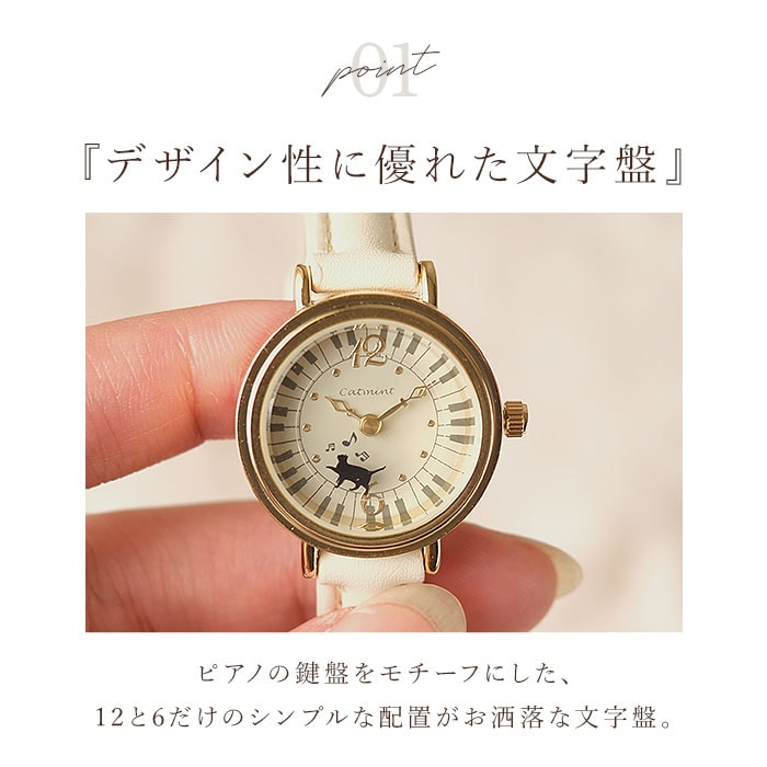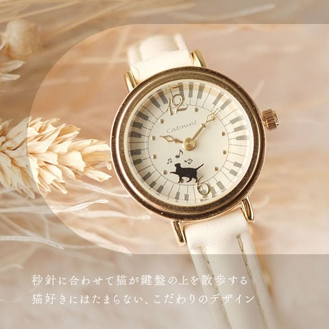 | 商品説明 | 【秒針と一緒に猫が鍵盤の上をお散歩★】秒針の動きに合わせて猫が鍵盤の上をお散歩。楽しいディテールが魅力の腕時計♪【見ているだけで気分がアガる可愛いデザイン】見るたびに気分が上がる可愛らしいデザイン。毎日のアクセントにぴったり☆【バックルにちょこんと隠れた肉球もキュート♪】バックル部分にさりげなく隠れた肉球デザインがキュート。細部までこだわり満載♪【色違いで揃えたくなるバリエーション】ベーシックなブラウンから目を引くレッドまで、使い方に合わせて色違いで揃えたくなる◎【にゃんこと一緒に楽しい時間を★】腕時計を見るたびににゃんこと楽しい時間を過ごせる。毎日がもっと楽しくなるアイテム★ |