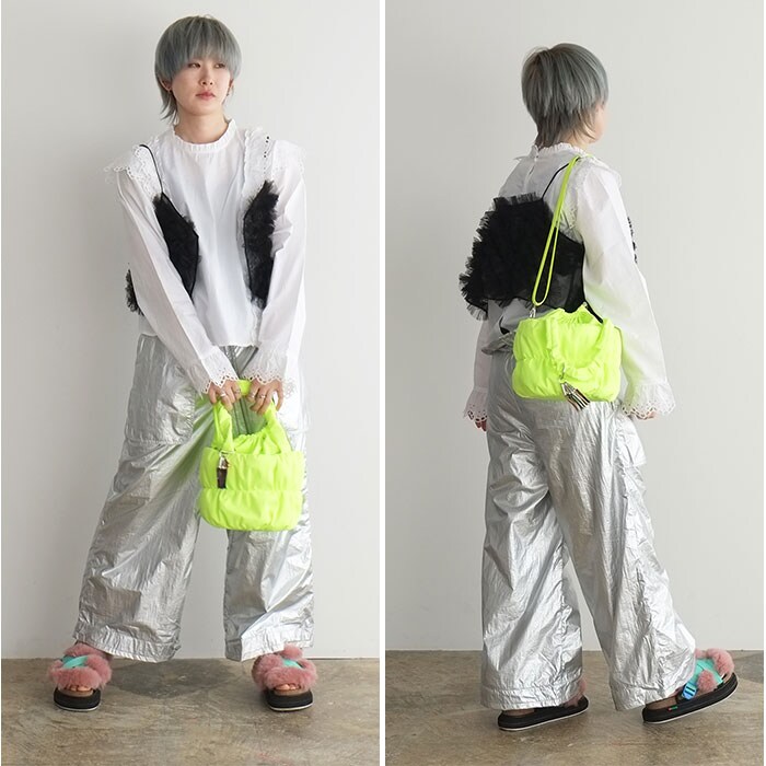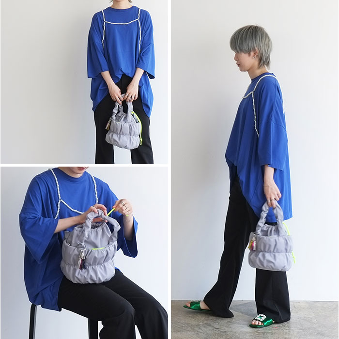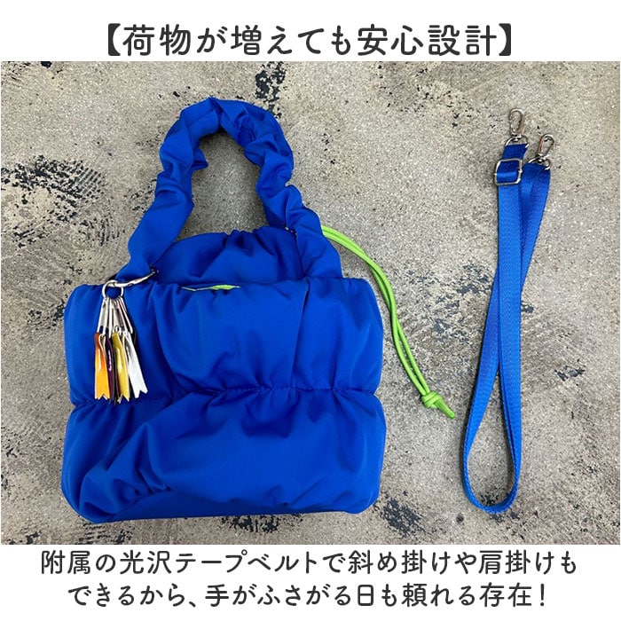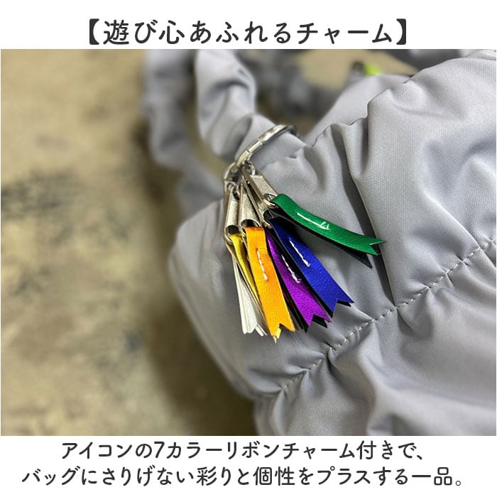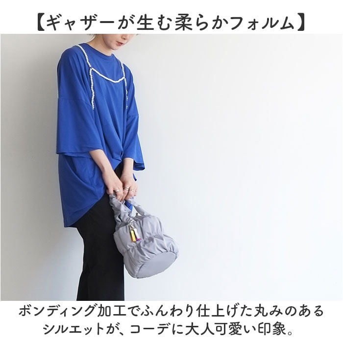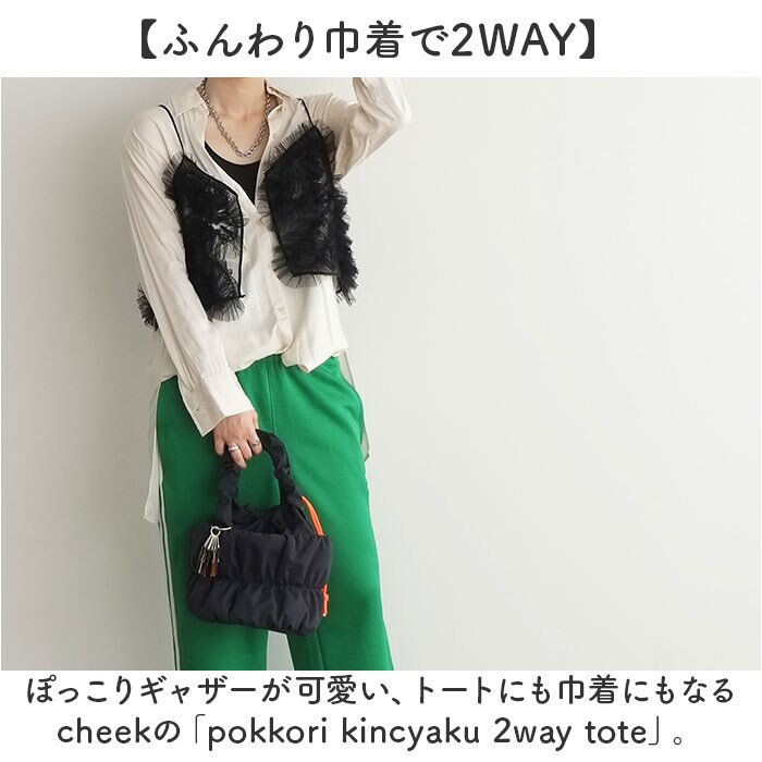 | 商品説明 | 【ふんわり巾着で2WAY】ぽっこりギャザーが可愛い、トートにも巾着にもなるcheekの「pokkori kincyaku 2way tote」。【持ち方自在の巾着トート】巾着を内側に折り込めばすっきりトートに早変わり、気分で切り替えられる2WAY仕様◎【荷物が増えても安心設計】附属の光沢テープベルトで斜め掛けや肩掛けもできるから、手がふさがる日も頼れる存在!【ギャザーが生む柔らかフォルム】ボンディング加工でふんわり仕上げた丸みのあるシルエットが、コーデに大人可愛い印象。【小物も安心のミニポケット】フロントのマグネット付きポケットにイヤホンや鍵をさっと収納、中身が飛び出さない安心感♪【リサイクル素材の軽やか仕立て】ツイル感のあるリサイクルポリエステル生地で環境にも優しく、毎日持ちたくなる軽やかさ〇【遊び心あふれるチャーム】アイコンの7カラーリボンチャーム付きで、バッグにさりげない彩りと個性をプラスする一品。 |