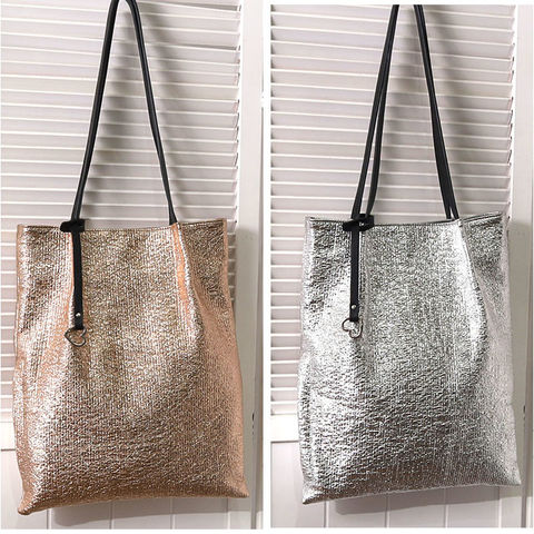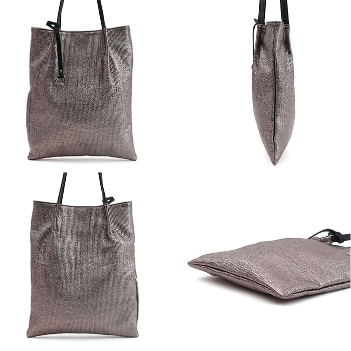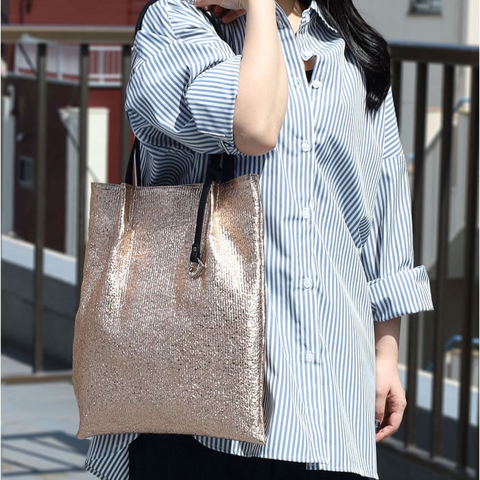 cooco メタリックツマミハンドルフラットトートバッグ【ピンクゴールド】