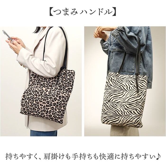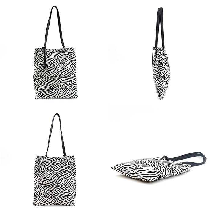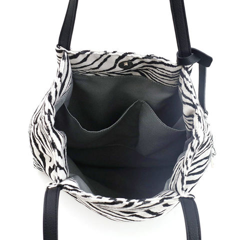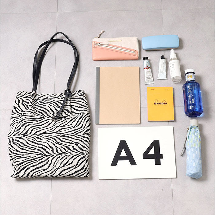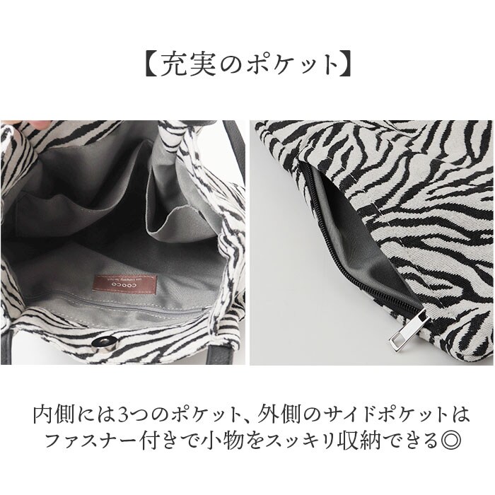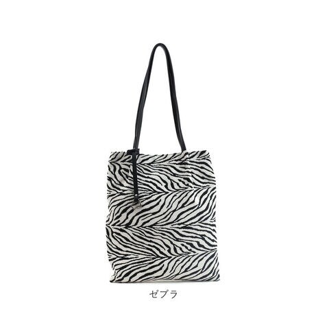 cooco アニマル柄ツマミハンドルフラットトートバッグ【ゼブラ】