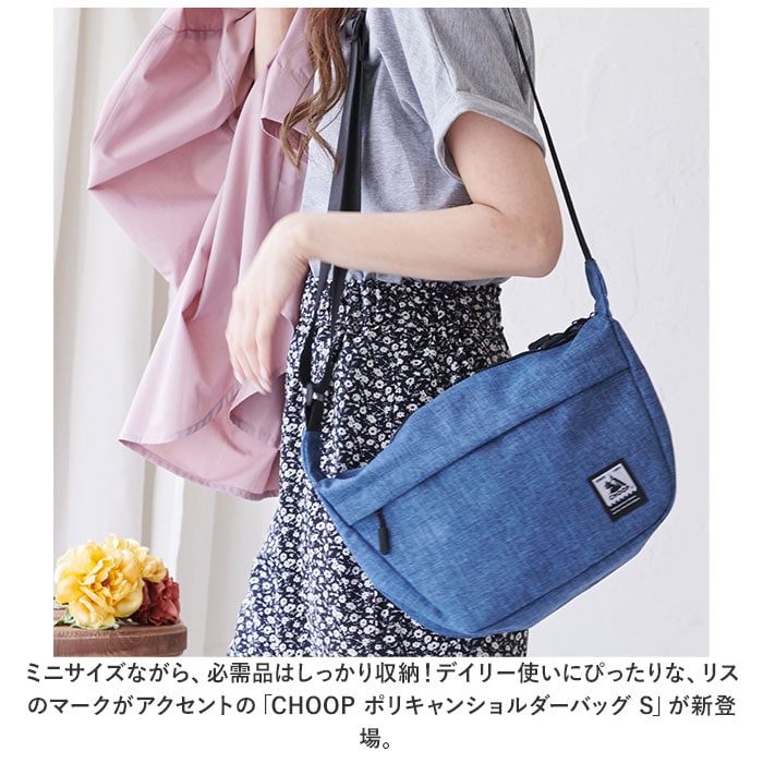 | 商品説明 | ミニサイズながら、必需品はしっかり収納!デイリー使いにぴったりな、リスのマークがアクセントの「CHOOP ポリキャンショルダーバッグ S」が新登場。【使い勝手ばっちり】落ち着いた色合いの杢調にCHOOP(シュープ)のトレードマーク、リスがアクセント★どの部屋もストライプの内生地が目を引く。性別・世代を問わず使えるデザイン。【軽量だけど、たっぷり収納】体に負担がかかりにくい軽量設計で、使い心地軽やか◎スリムなシルエットながら、お出かけのマストアイテムがすっきり収まるショルダーバッグ。【身軽にお出かけ】500mlペットボトルやポーチ、長財布もすっぽり入るサイズ感。コンパクトに見えても必要なものはしっかり収納して身軽にお出かけ♪【安心のファスナー開口】開口部は左右どちらからも開けられるダブルファスナータイプで、取り出しもスムーズ。中身がこぼれ落ちにくく、プライバシーを確保。【サッと取り出せるポケット】内側と外側に合計6つのポケットを配置。小物が迷子になりにくく、整理整頓がラクラク。フロントポケットは防犯面も安心のかぶせ仕様。【色んなシーンで活躍】肩に食い込みにくい幅広ショルダー。ショルダーベルトの長さを調節して、肩掛けも斜め掛けも自在。両手が空くので、レジャーや旅行などでも重宝。【ちょっとの雨なら大丈夫】表面に水滴や汚れをサッと弾くはっ水加工済みなのでアウトドアにピッタリ。(※完全防水ではありません。)【選べるカラー】ユニセックスで使いやすい、落ち着きのあるカラーをラインナップ。 |