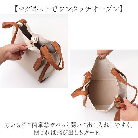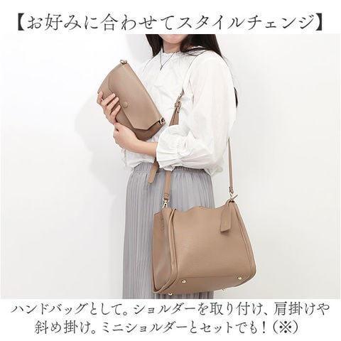 | 商品説明 | 【バリュアブルな3点セット☆】一緒に使えるミニショルダー&メッシュポーチ付き!「cache cache ミニバッグ」。【オン・オフ問わない上品な風合い】バッグは柔らかな質感で、本革のようなフェイクレザー。落ち着きがあり色んなコーデにマッチ♪【お好みに合わせてスタイルチェンジ】ハンドバッグとして。ショルダーを取り付け、肩掛けや斜め掛け。ミニショルダーとセットでも!(※)付属のショルダーは、本体バッグとミニショルダー兼用です。【マグネットでワンタッチオープン】力いらずで簡単◎ガバっと開いて出し入れしやすく、閉じれば飛び出しもガード。【A5対応ですっきりひとまとめ】A5や500mlペットボトルが収まる大きさ。長財布やコスメポーチなどをIN。【形崩れしにくく安定感をプラス】ソフトな底板付きで、荷物を入れていない状態でも自立。キレイなフォルムもキープ。【底面の擦れを軽減して長持ち】底面四隅には、傷や汚れが付きにくい底鋲を装備。直置きも安心。【アクセントになるミニショルダー】ちょこんとプラスできるアイテム♪プライバシーも確保できるファスナー&マグネットフラップ。【小物がまとまるメッシュポーチ】エチケットグッズやモバイルバッテリーなど、細々したものの収納に。単体使いもOK。【お気に入りを選べるカラー】ベーシックや差し色などをラインナップ。シンプルで飽きが来ず、長く使えるのが嬉しい♪【cachecache】フランス語で「かくれんぼ」の意。ガーリッシュとちょっと背伸びをした大人っぽさをミックス。 |