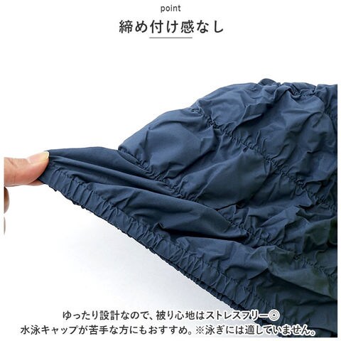 | 商品説明 | ふんわりフィルムでヘアスタイルの崩れを防ぐ!「ゆったりアクアキャップ エアー」が登場。【ふんわりフォルム】ふんわりフォルムのゆったりとした被り心地で、ヘアスタイルの崩れなどを防ぐ、新しいアクアキャップ。【水中ウォーキングや温泉で】水中ウォーキングや温泉、自宅のお風呂など使えるシーンはたくさん♪髪を濡らしたくない、そんな場面で活躍するアイテム。【水を通しにくい】水を通しにくいフィルムをラミネート加工。防水性のある生地で髪の毛を濡れにくくキープ!【締め付け感なし】ゆったり設計なので、被り心地はストレスフリー◎水泳キャップが苦手な方にもおすすめ。※泳ぎには適していません。【ムレにくい】キャップの中はムレにくい、透湿性のある生地。汗をかくシーンでも快適!【誰でもOK】エイジレスで誰でも使えるシンプルデザイン。お気に入りをチョイス! |
