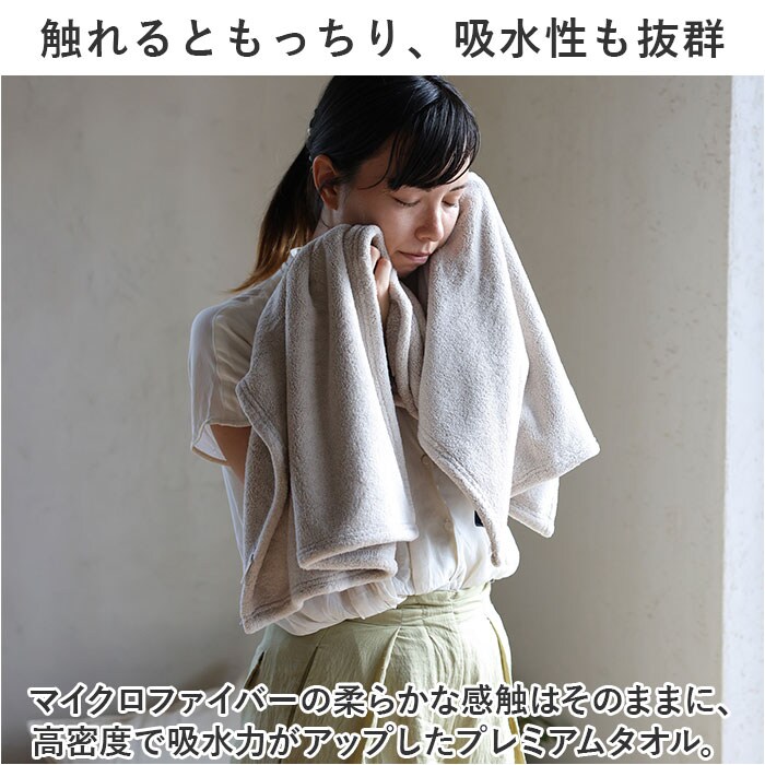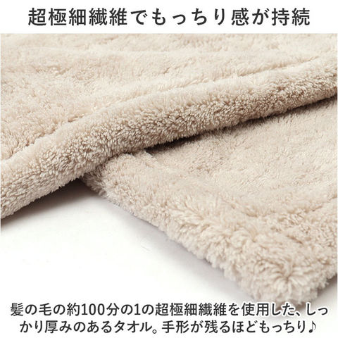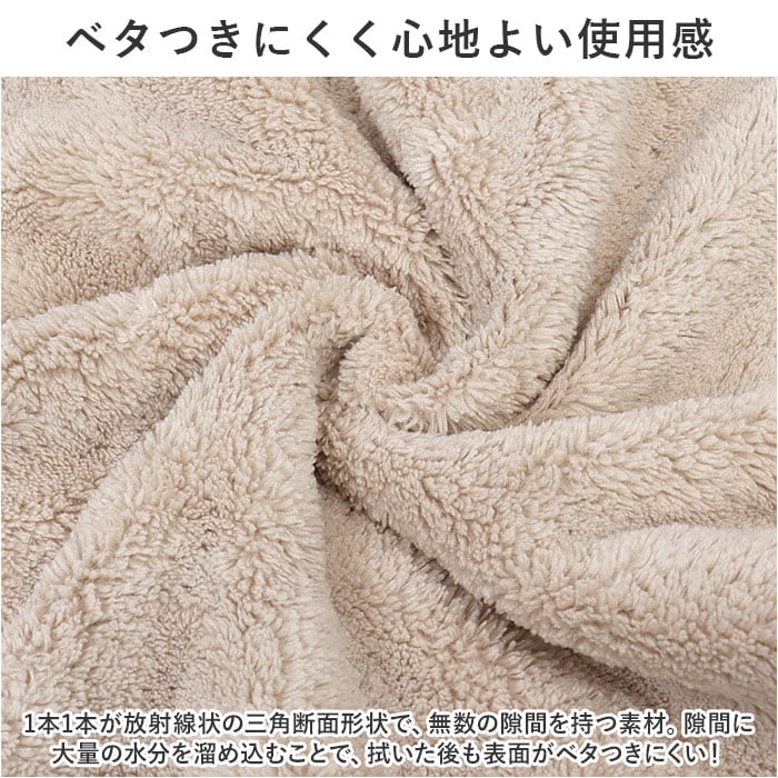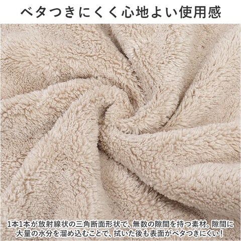 | 商品説明 | 思わず顔をうずめたくなるような柔らかさと密度♪タオルドライで時短ケア!カラリデイプレミアムのヘアドライタオルが新登場。【触れるともっちり、吸水性も抜群】マイクロファイバーの柔らかな感触はそのままに、高密度で吸水力がアップしたプレミアムタオル。【綿の約5.9倍の吸収力で摩擦レス】水に触れた瞬間、吸い込まれるようにサッと吸水!髪の毛を優しく包み込み、摩擦による負担を軽減◎【ベタつきにくく心地よい使用感】・1本1本が放射線状の三角断面形状で、無数の隙間を持つ素材。隙間に大量の水分を溜め込むことで、拭いた後も表面がベタつきにくい!【脱水後も驚きの軽やかさ】たっぷりと吸水させて重くなっても、絞ると吸水力が元通り。脱水にかけると、とっても軽くなるのがポイント。【毎日使いたくなる優れた速乾性】部屋干しでもしっかり乾く!速乾性の高さも魅力。【超極細繊維でもっちり感が持続】髪の毛の約100分の1の超極細繊維を使用した、しっかり厚みのあるタオル。手形が残るほどもっちり♪【滑らかなカットパイル仕上げ】通常のタオルとは異なり、表面を刈り取ったカットパイル仕上げ。引っかかりにくく滑らかな肌触り。【引っ掛けて使えるループ付き】真ん中にはフックに引っ掛けられるループを装備。フックなどに吊るして使えて便利。【持ち運びしやすく様々なシーンで】折りたたんだり、丸めればコンパクト!ジムやプールなどにもおすすめ。【毎日使いにぴったりなシンプルさ】空間に馴染みやすいナチュラルな色合いに、ロゴ入りのタグがワンポイント。毎日大活躍間違いなし☆ |