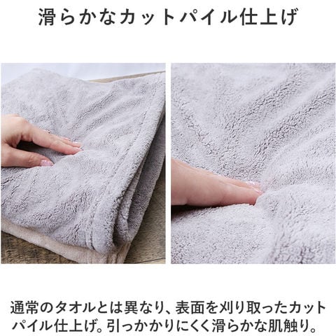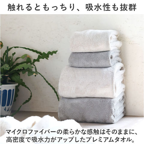 | 商品説明 | 思わず顔をうずめたくなるような柔らかさと密度♪カラリデイプレミアムのバスタオル2枚セット。【触れるともっちり、吸水性も抜群】マイクロファイバーの柔らかな感触はそのままに、高密度で吸水力がアップしたプレミアムタオル。【綿の約5.9倍の吸収力で摩擦レス】水に触れた瞬間、吸い込まれるようにサッと吸水!摩擦による、お肌や髪の毛への負担を軽減◎【ベタつきにくく心地よい使用感】・1本1本が放射線状の三角断面形状で、無数の隙間を持つ素材。隙間に大量の水分を溜め込むことで、拭いた後も表面がベタつきにくい!【脱水後も驚きの軽やかさ】たっぷりと吸水させて重くなっても、絞ると吸水力が元通り。脱水にかけると、とっても軽くなるのがポイント。【超極細繊維でもっちり感が持続】髪の毛の約100分の1の超極細繊維を使用した、しっかり厚みのあるタオル。手形が残るほどもっちり♪【滑らかなカットパイル仕上げ】通常のタオルとは異なり、表面を刈り取ったカットパイル仕上げ。引っかかりにくく滑らかな肌触り。【引っ掛けて使えるループ付き】真ん中にはフックに引っ掛けられるループを装備。フックなどに吊るして使えて便利。【持ち運びしやすく様々なシーンで】折りたたんだり、丸めればコンパクト!ジムやプールなどにもおすすめ。【毎日使いにぴったりなシンプルさ】空間に馴染みやすいナチュラルな色合いに、ロゴ入りのタグがワンポイント。洗い替えに便利な2枚セット。 |